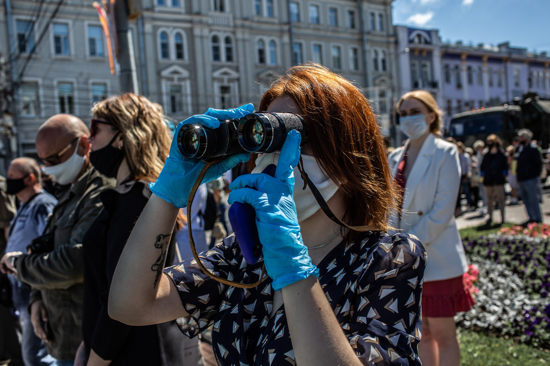 Зрители на параде победы 9 мая во время эпидемии COVID-19, Воронеж