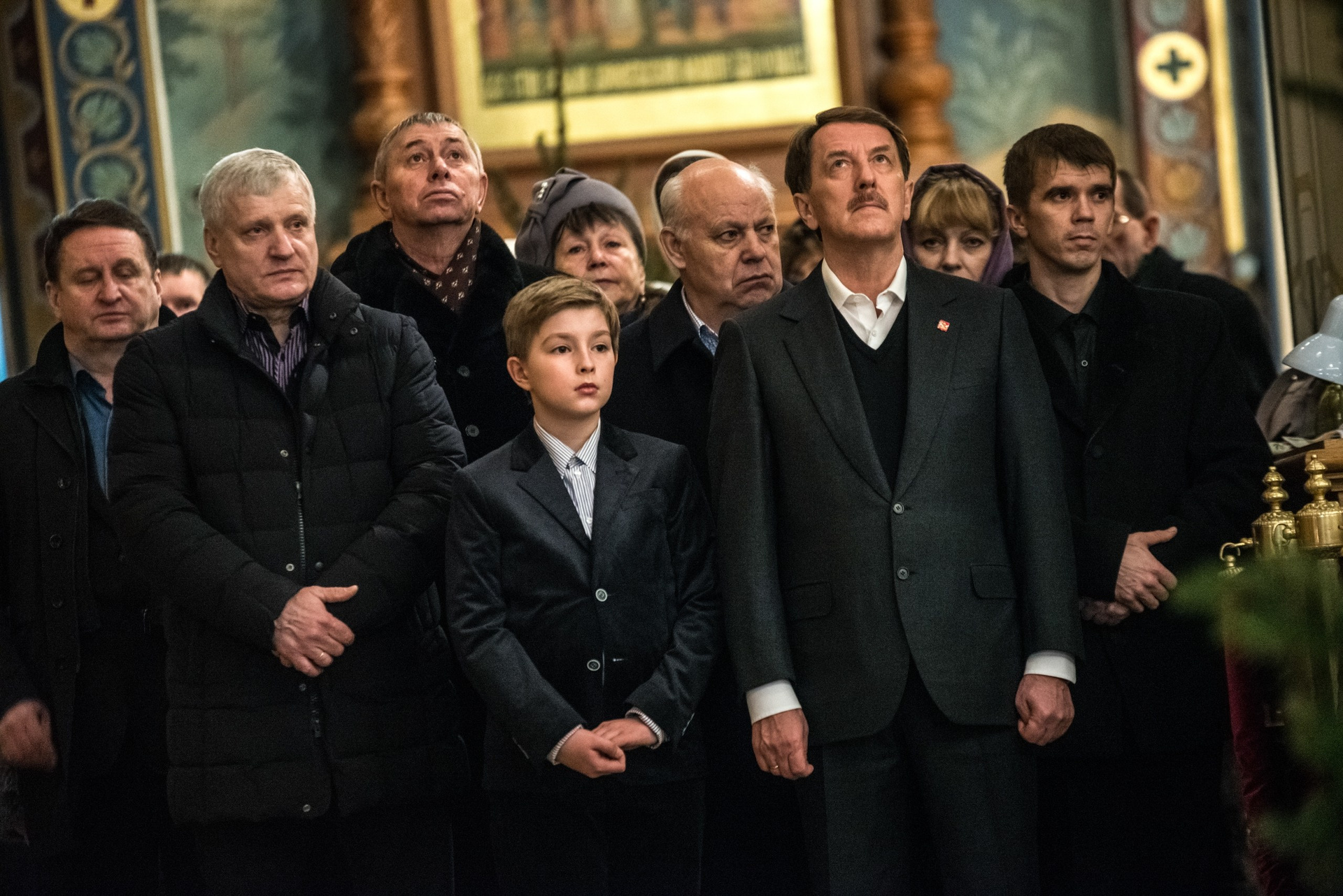 Губернатор Воронежской области Алексей Гордеев с внуком на рождественском ночном богослужении, Воронеж.